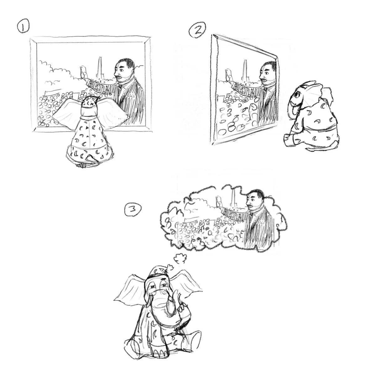 I was asked by arweave to design an elephant character called Winston who would be recalling significant moments throughout history. These illustrations will be provided to their community in the future.